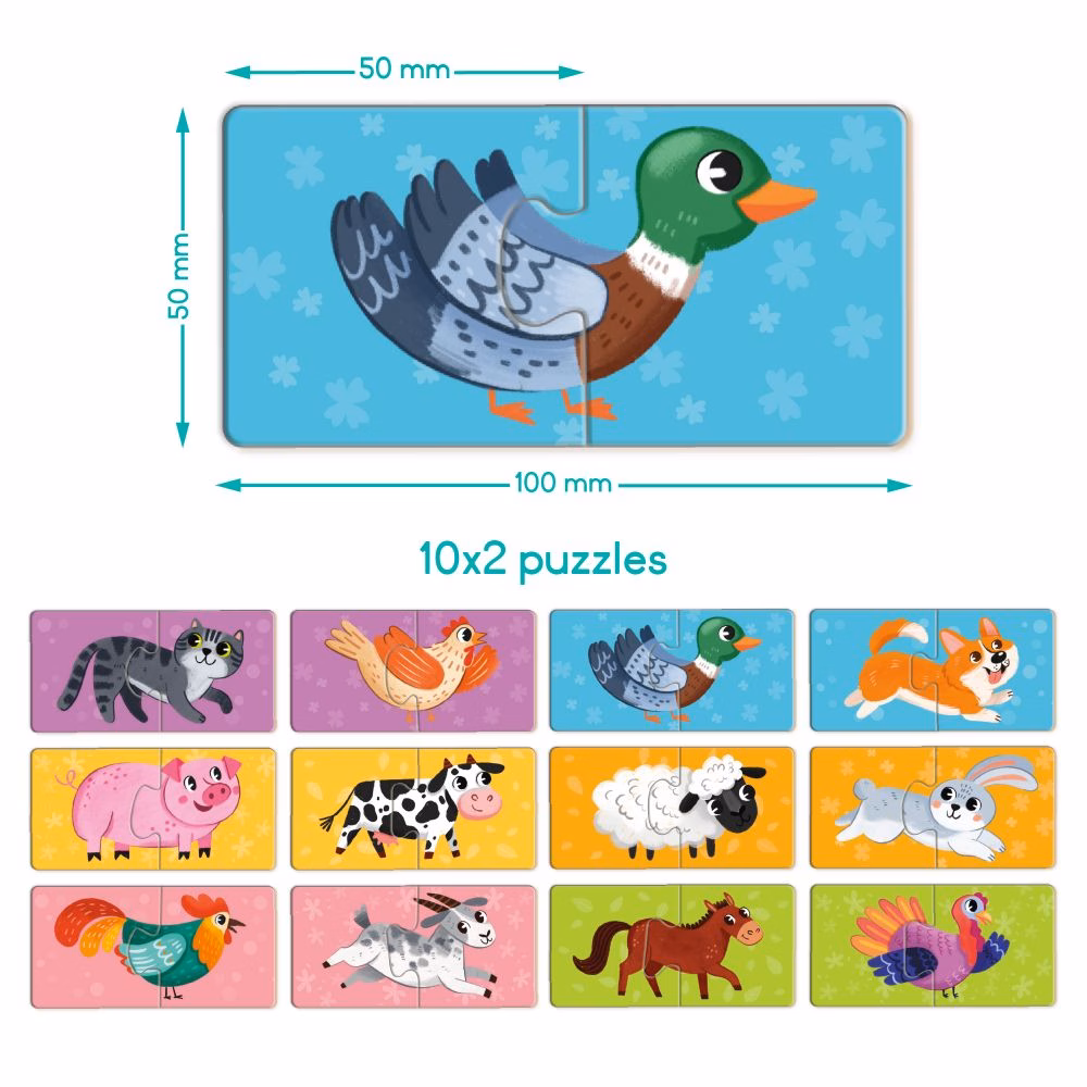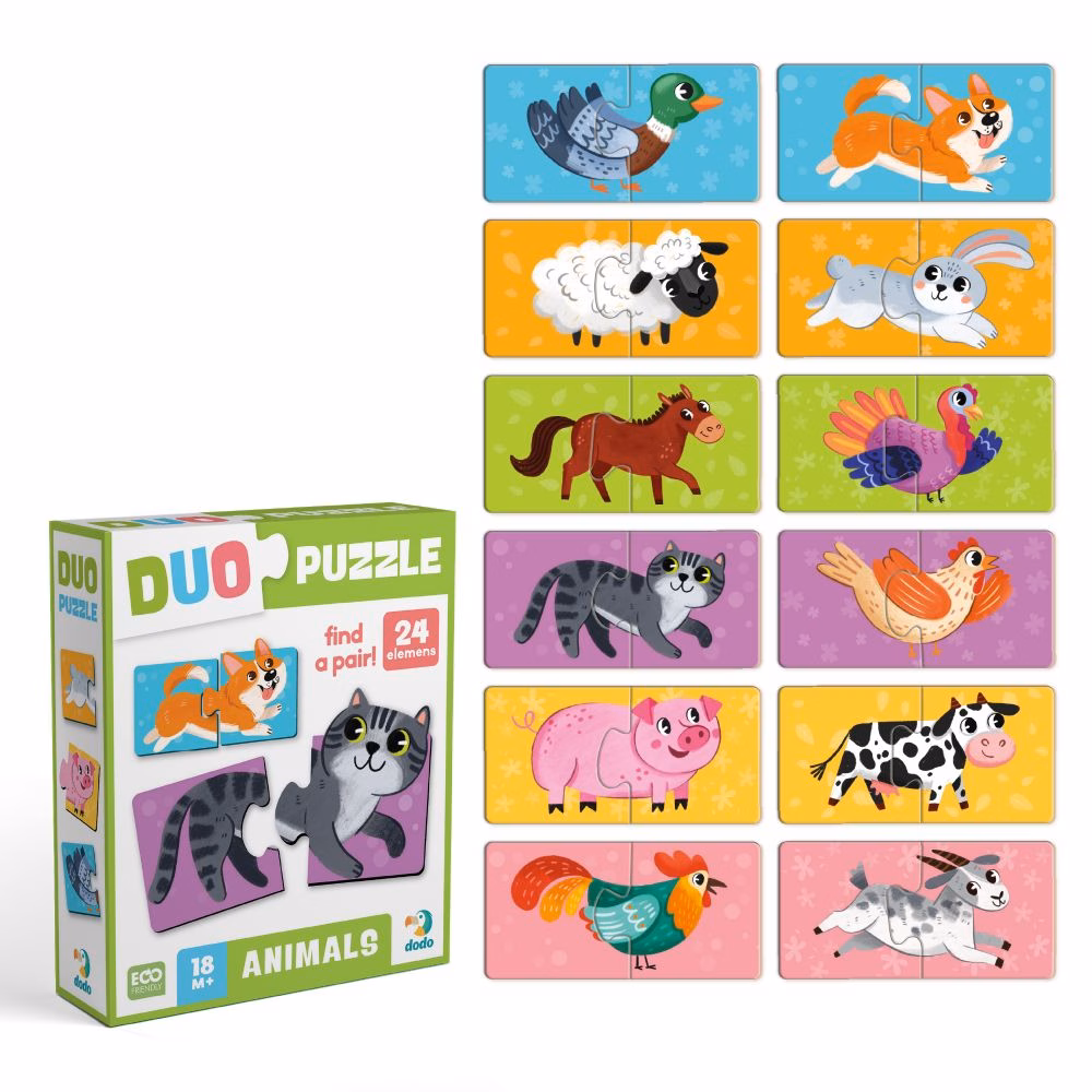 Kaheosaline pusle “Loomad” on ideaalne esimene hariv mänguasi väikelastele. See lihtne mäng aitab tutvustada erinevaid loomi, arendades samal ajal lapse olulisi oskusi.
