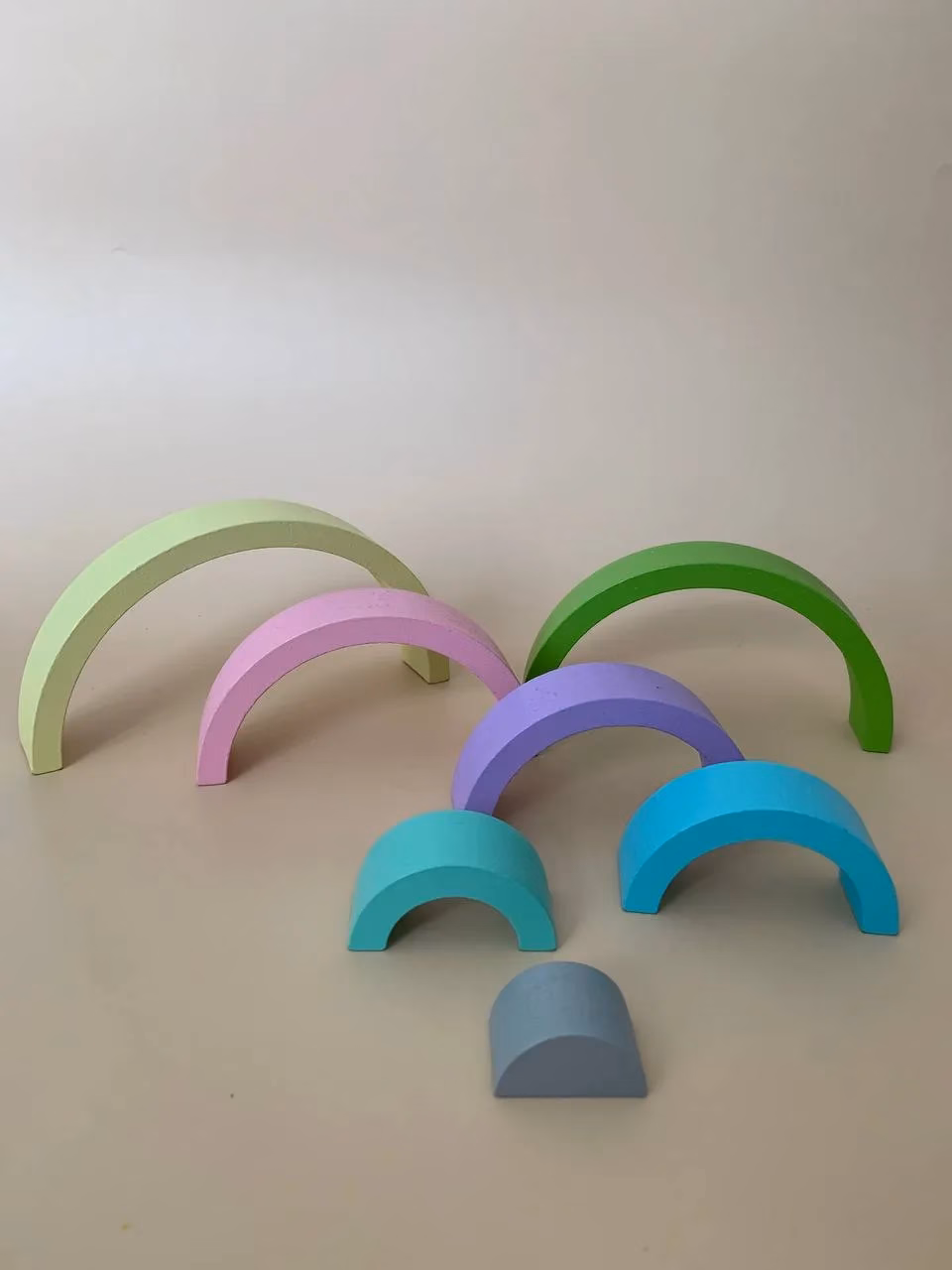 Puidust klotsid Montessori vikerkaar on ideaalne vahend laste loovuse ja motoorsete oskuste arendamiseks, lähtudes Montessori pedagoogikast.