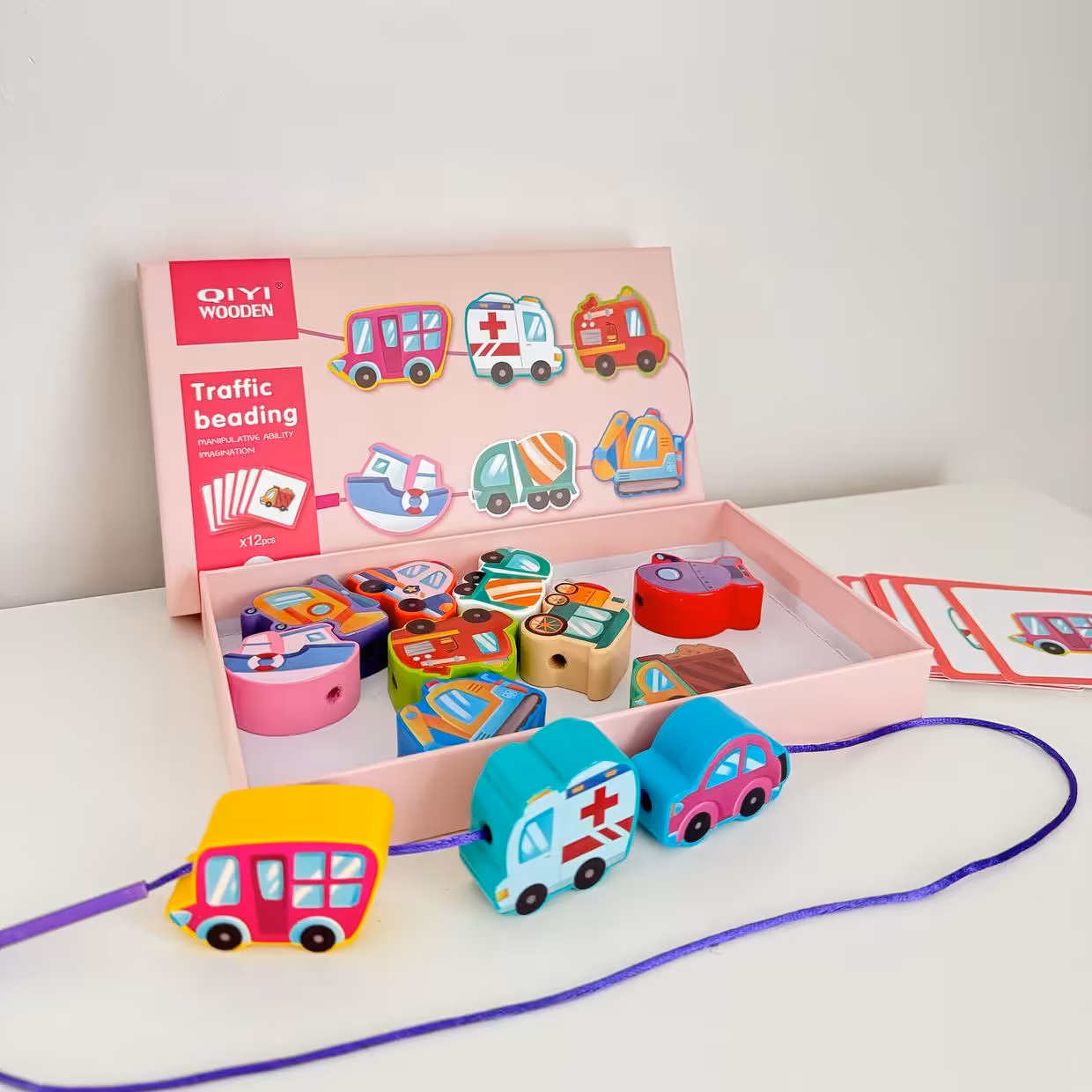 Need lõbusad ja arendavad nöörimismängud sobivad suurepäraselt lastele alates 18. elukuust. Mängukomplektid sisaldavad puidust kujukesi, mis on disainitud vastavalt teemale – loomad, putukad, puuviljad või transpordivahendid. Igal komplektil on kaasas nöör, mille abil saab laps kujukesi läbi aukude nöörida, arendades käelist osavust, keskendumisvõimet ja kannatlikkust.