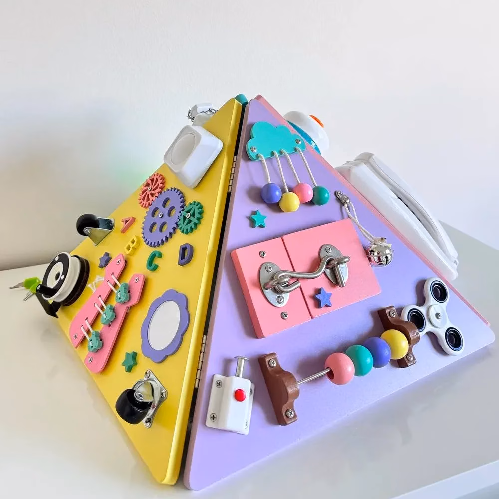 Busy board – motoorikakeskuses on 22 liikuvat elementi, mis panevad lapsed avastama ja õppima. Lauatelefon nuppudega, nupud tuledega, spinner, lukud, hammasrattad, kellad, lülitid ja veel palju muud! Lapsed saavad avastada, puudutada, pöörata ja lülitada, arendades samal ajal oma motoorikat ja loovust.