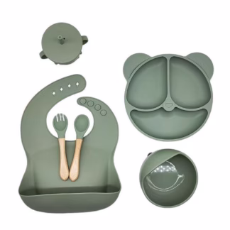 Laste sööginõude komplekt silikoonist 6-osaline – roheline